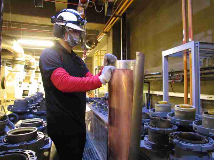 人生就是博将废弃物转化成有效的工业或民生原物料,,图为废铜液淬炼后再制成纯度极高的铜管