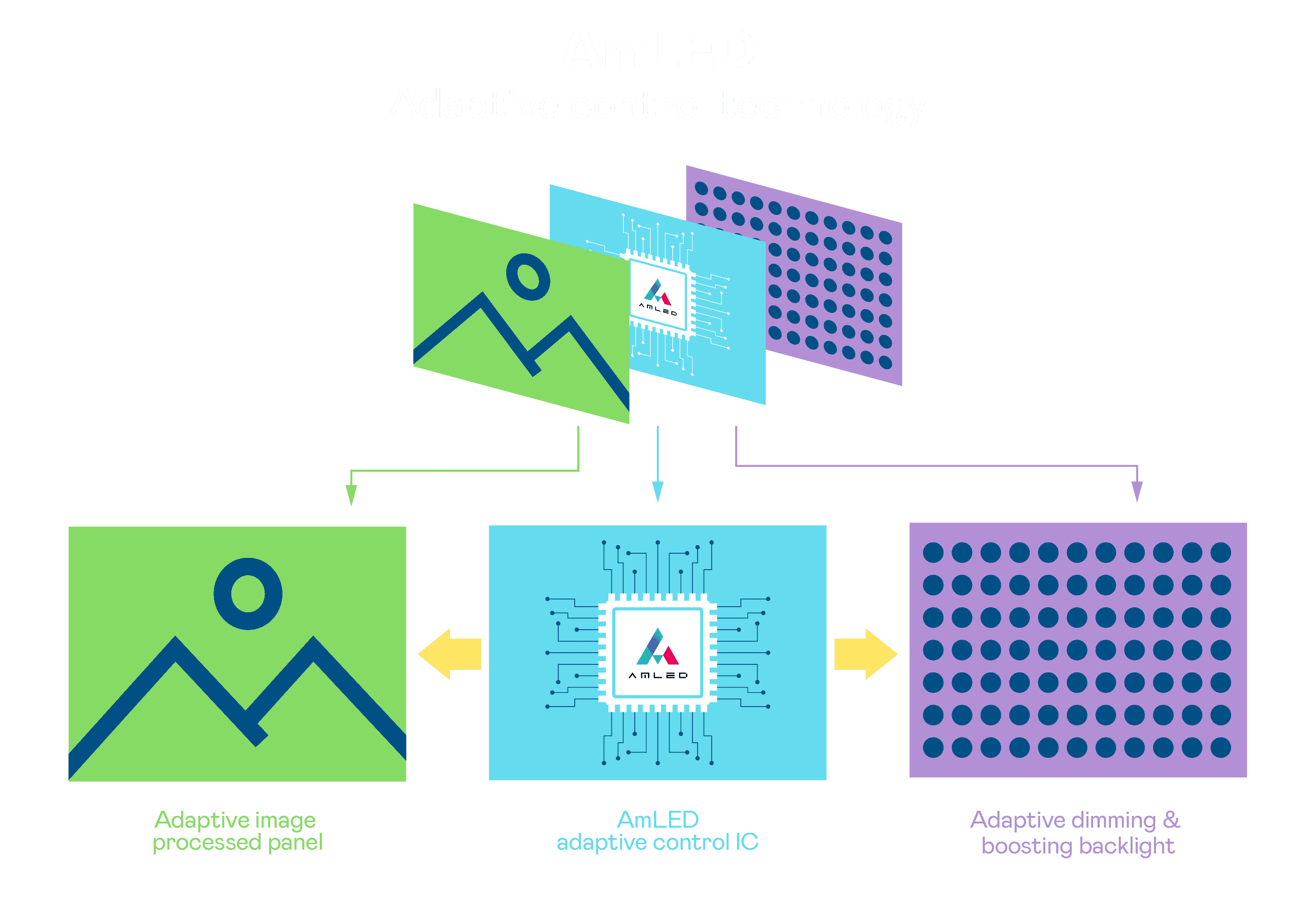 透过动态影像处理和 Mini LED 背光模组的动态对比及峰值亮度调变,,AmLED 显示技术精准细致的局部调光效果达到超过 1,000 nits 的超高亮度表现,,,,亮部更明亮、、、暗处更深邃,,,,呈现真实黑色中的亮度以及平滑灰阶,,,,打造出具层次分明的精致光影细节。。