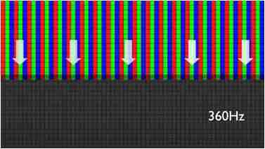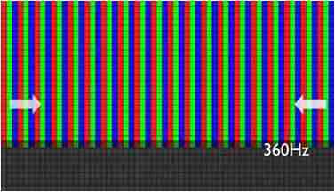 传统液晶驱动是从左到右单向进行,,,在画面更新速度愈来越愈快的情况下,,,位于驱动线路末端的右下角区域,,,,画素的闸极来不及在短时间内获得足够电压,,,,无法显示出正确的颜色资讯。。。。 |